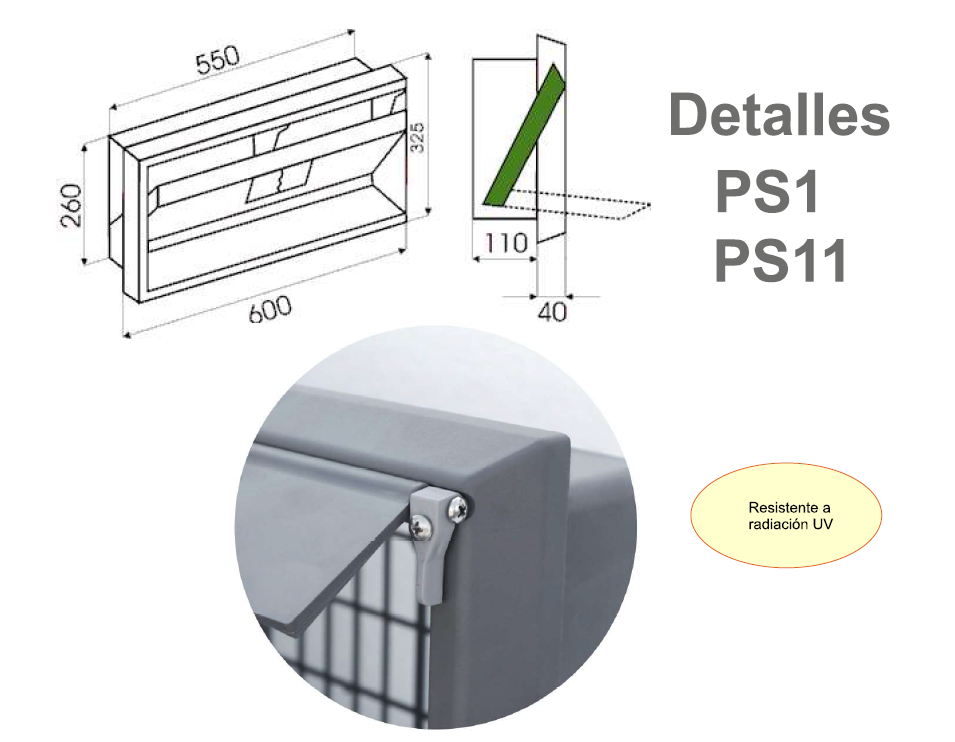 Entradas de aire de Poliestireno de alto impacto con 20mm aislamiento térmico en el ala y refuerzo de pletina de aluminio.