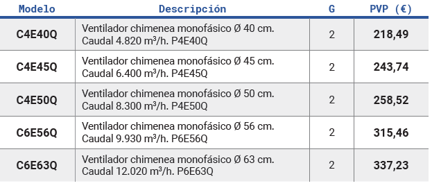 – C4E50Q  Ventilador chimenea monofásico Ø 50 cm.